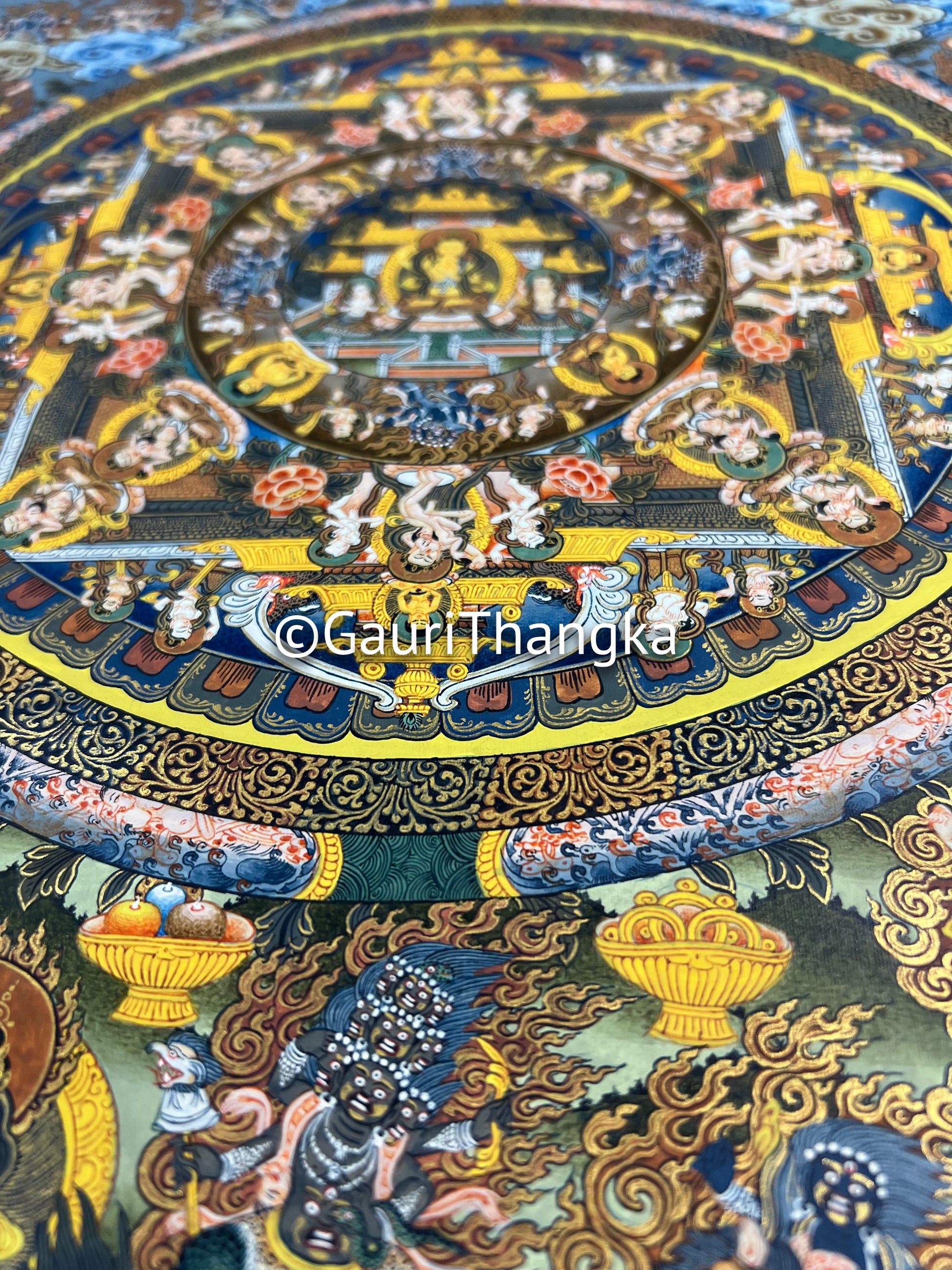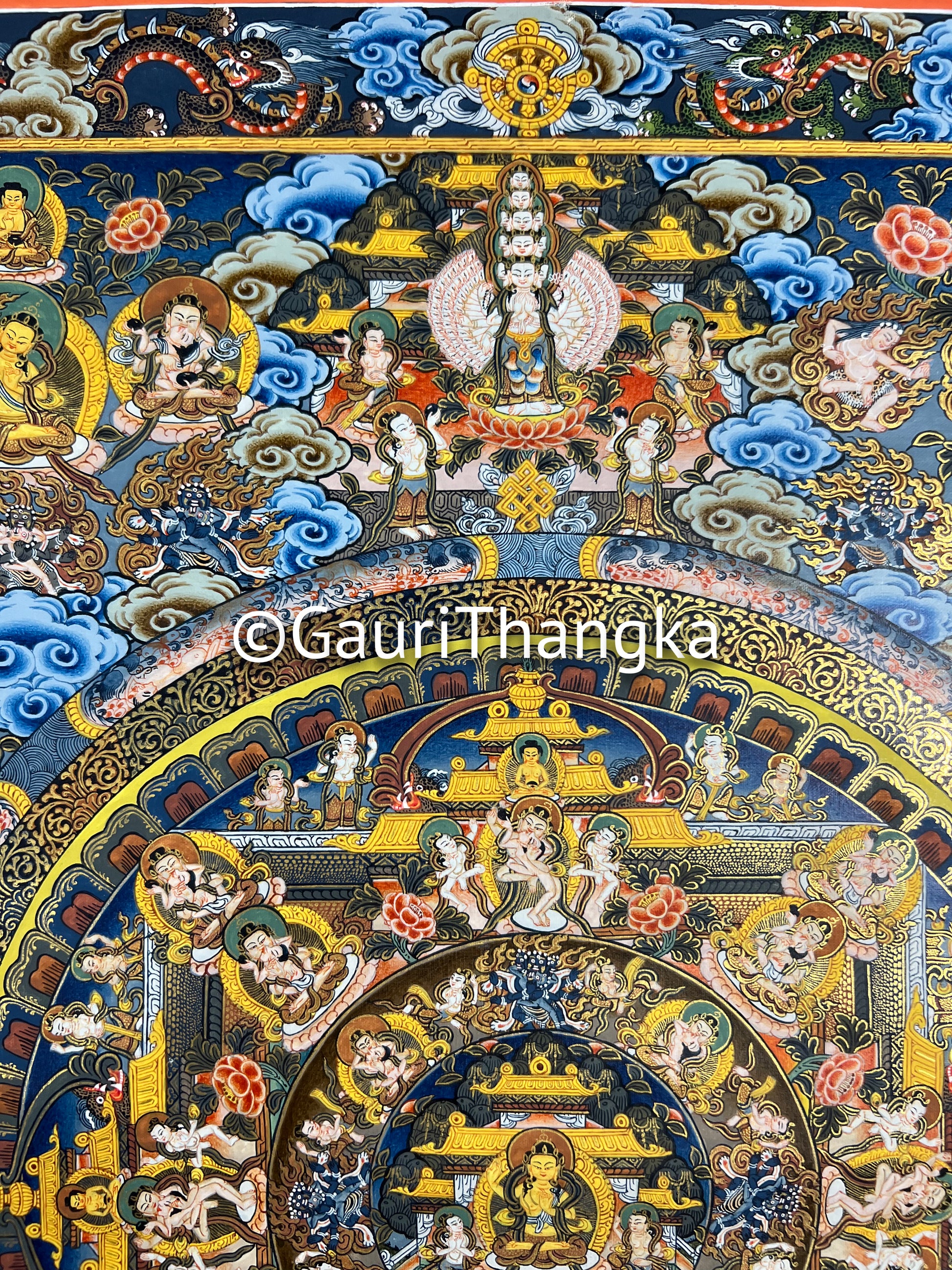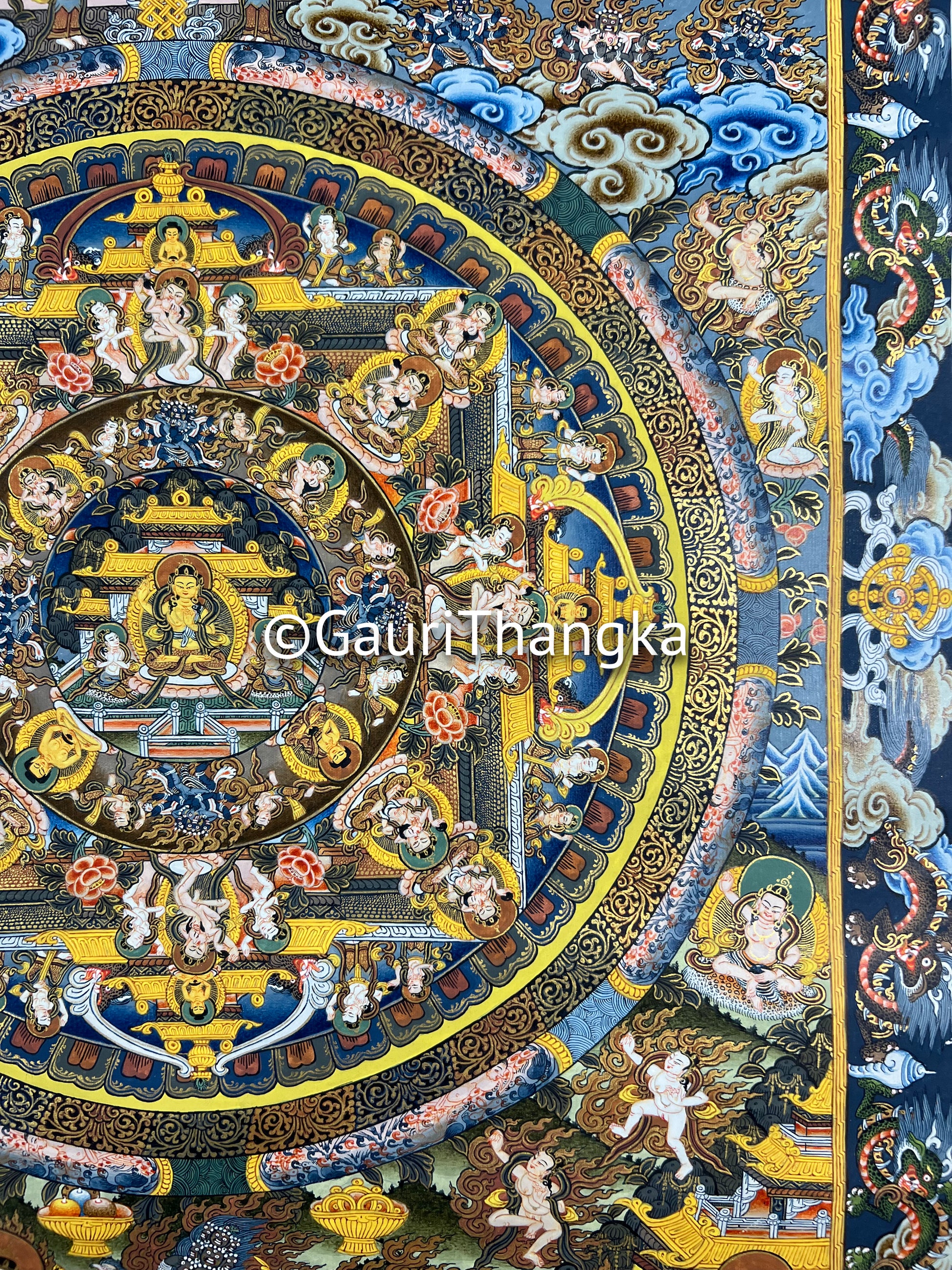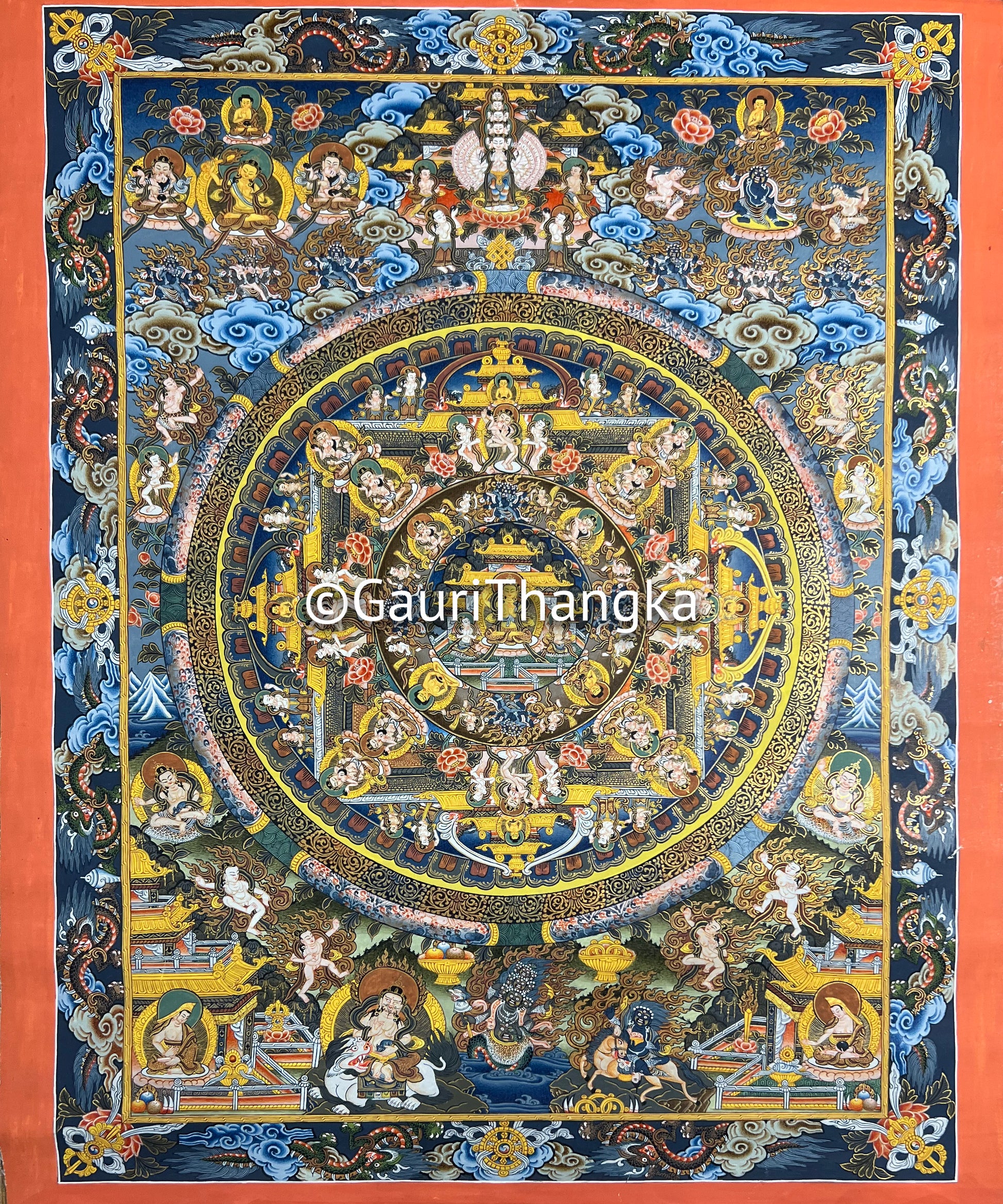 Each circle and deity within the mandala tells the story of creation, existence, and the interconnection of all life forms.