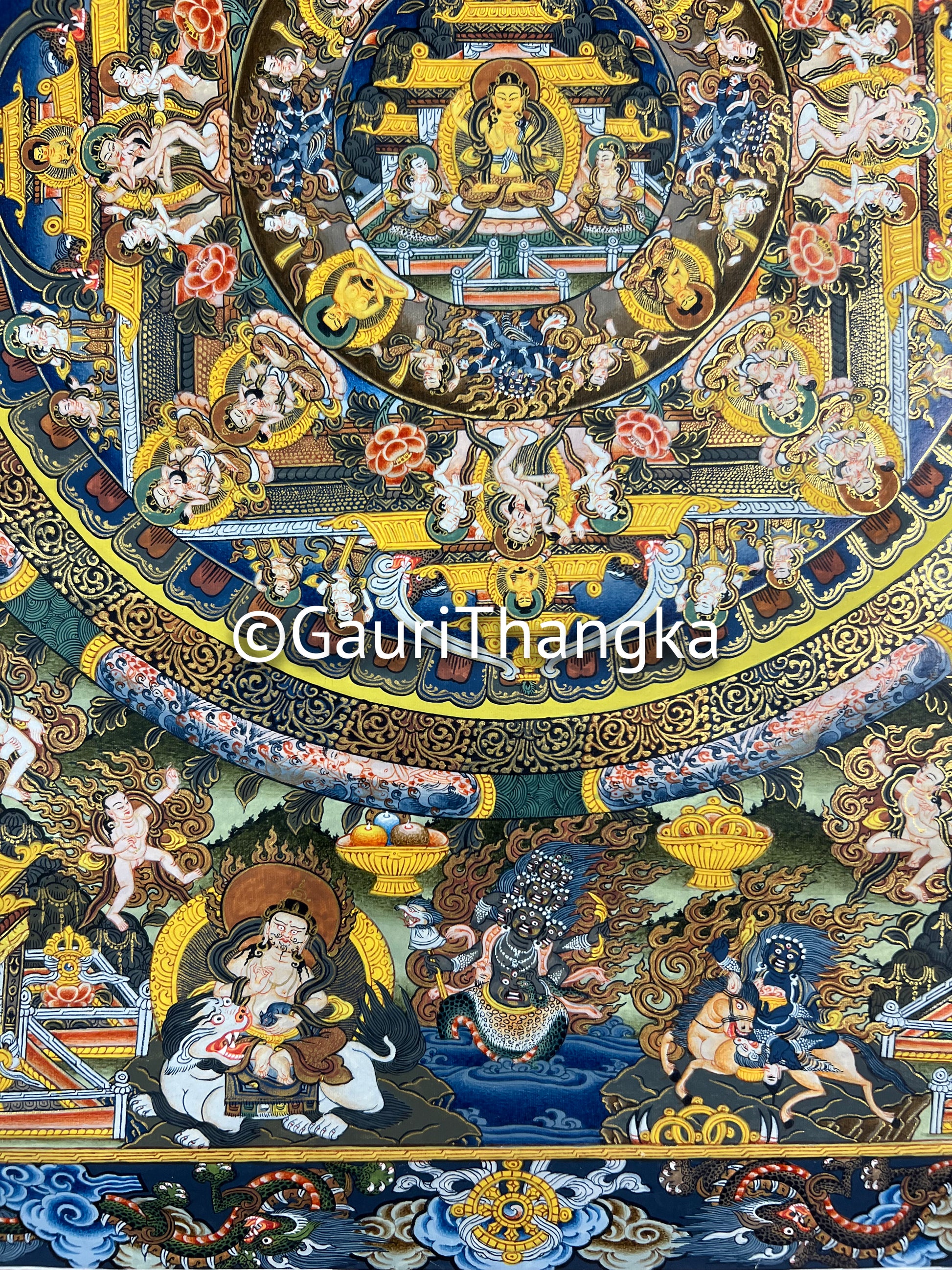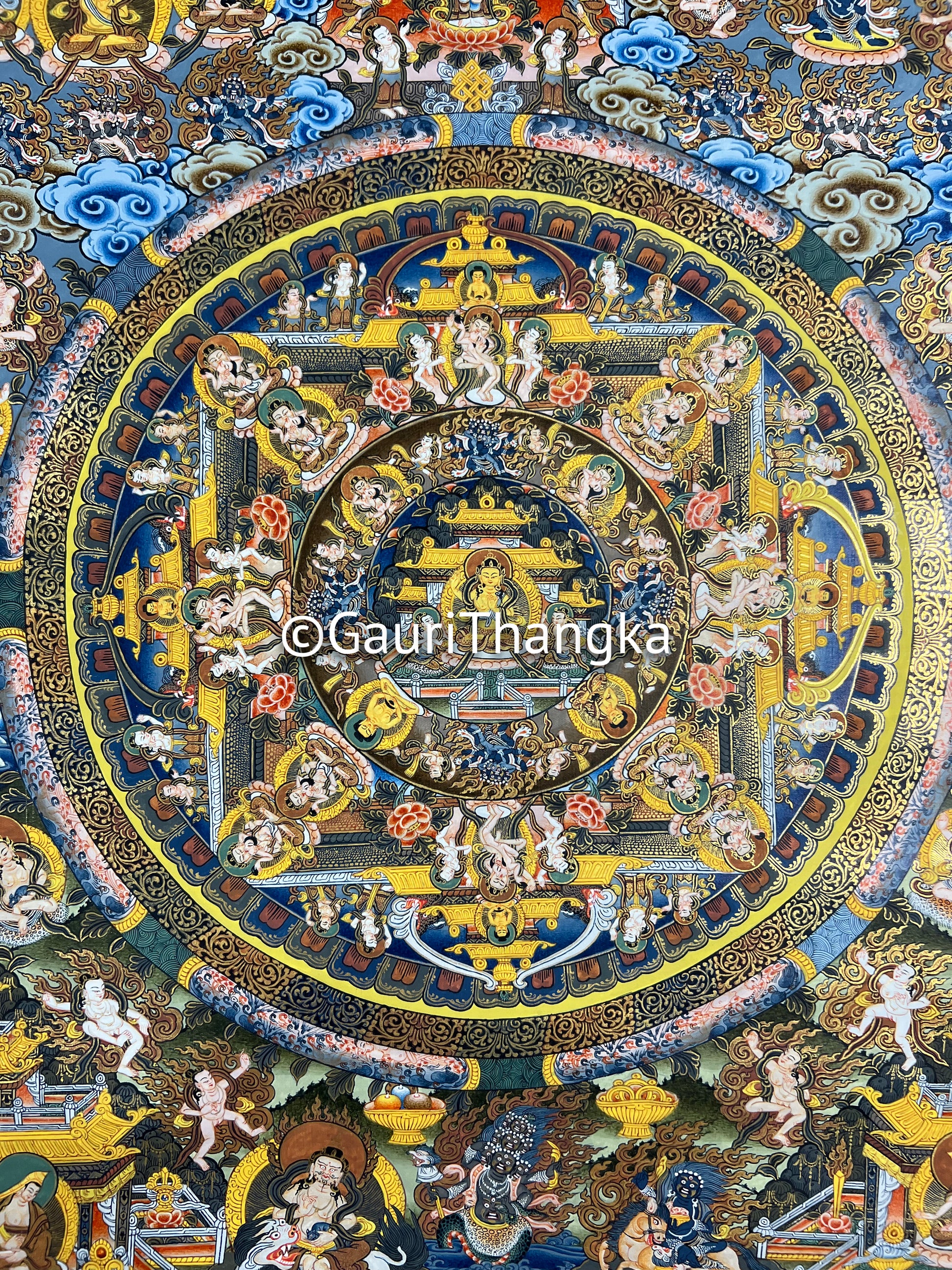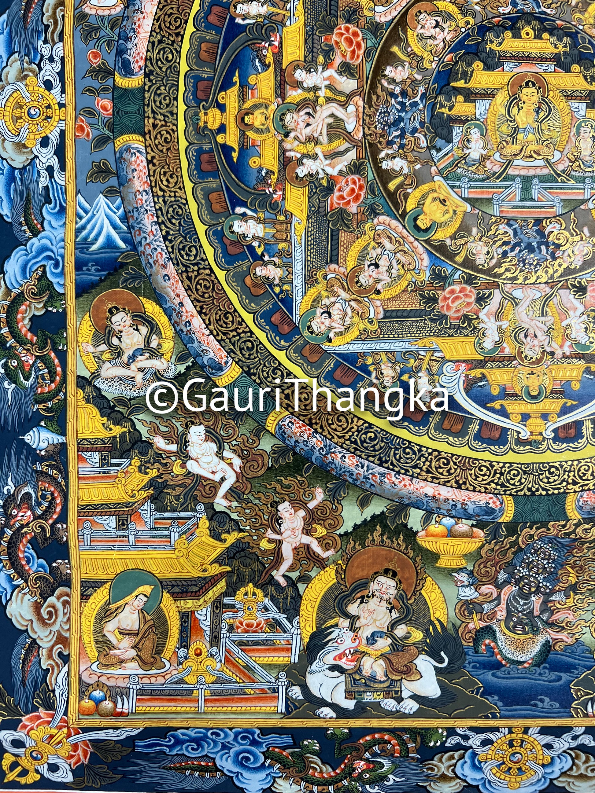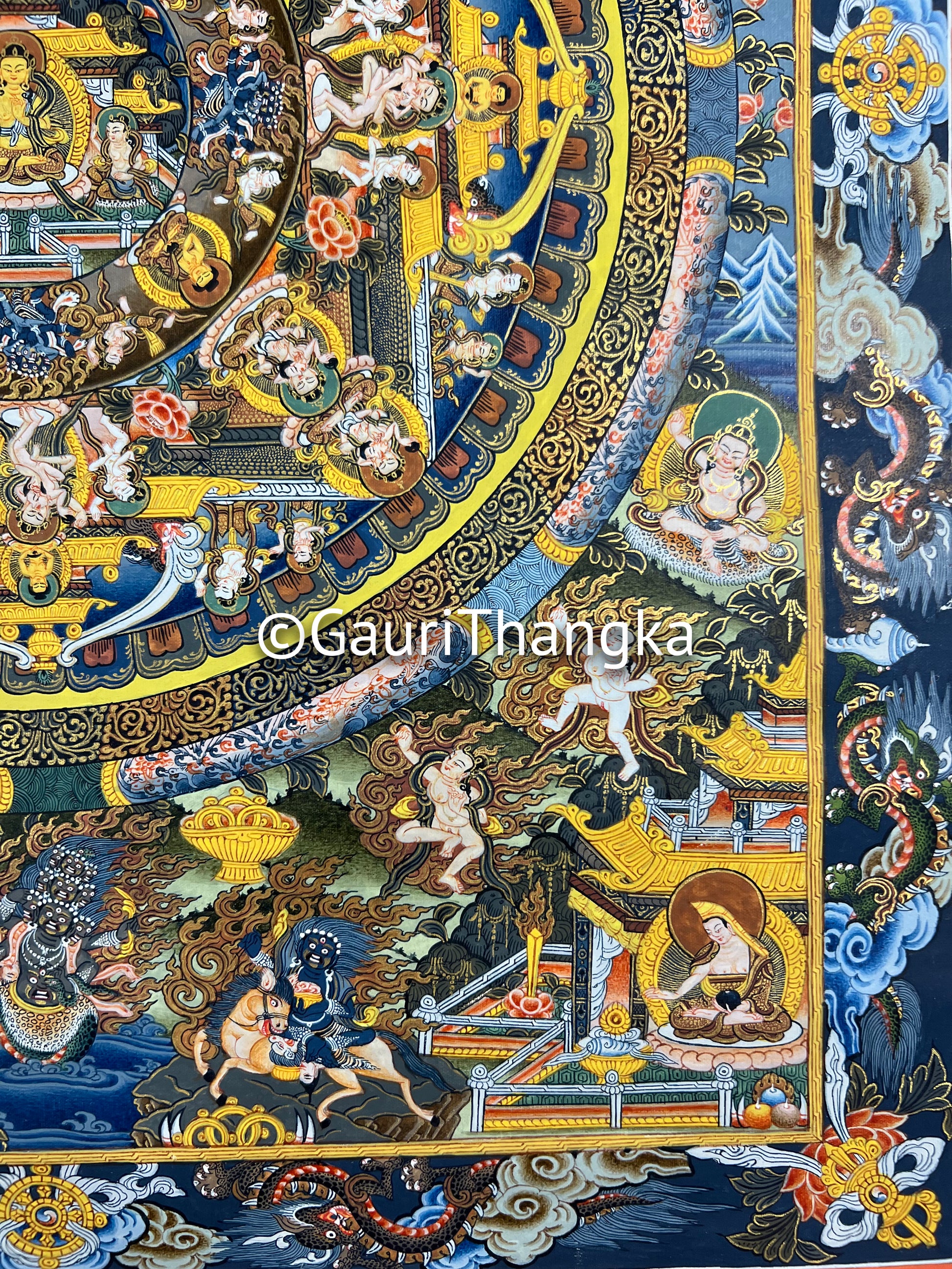 A sacred Universal Life (Kalachakra Mandala) Thangka that embodies time, balance, and the cosmic connection between all beings.
